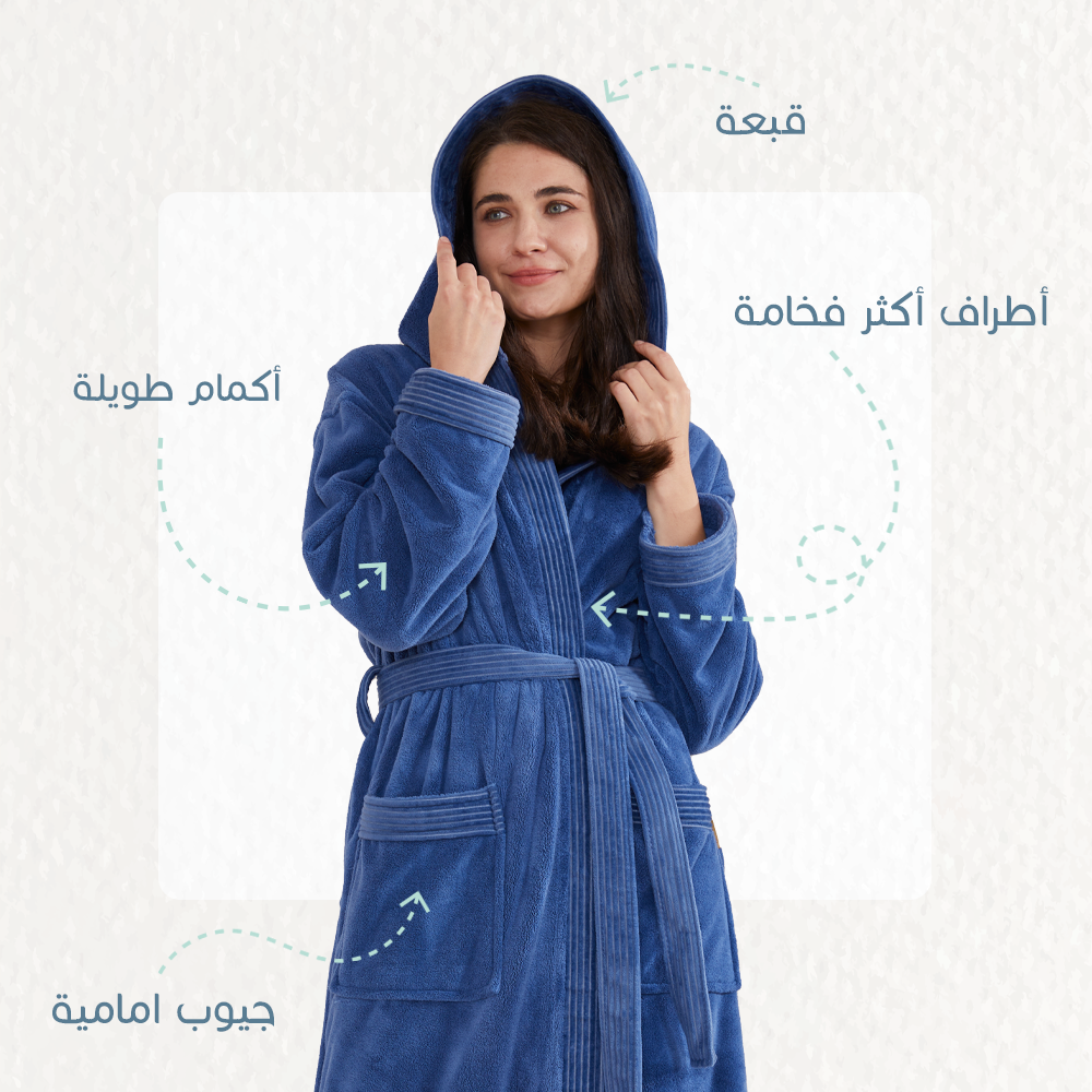 يأتي الروب بحزام أنيق من المنتصف، وجيوب أمامية لتدفئة يديك